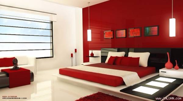 - Sơn phòng ngủ màu đỏ. Theo quan niệm phong thủy, màu đỏ là màu thu hút sự đam mê.